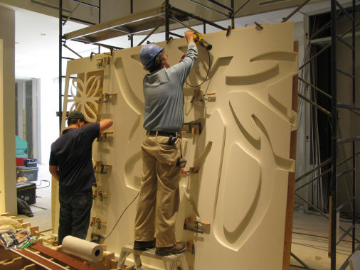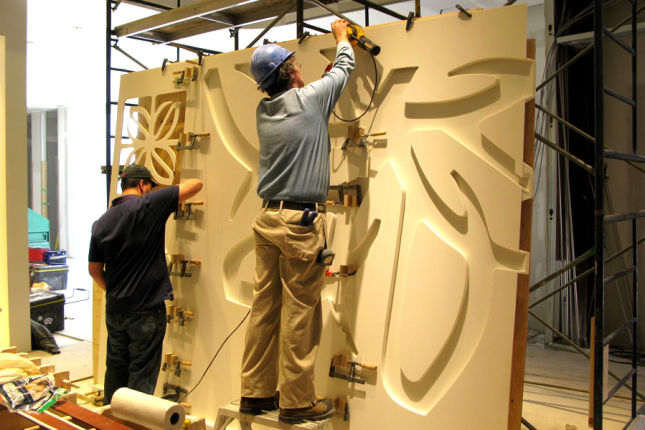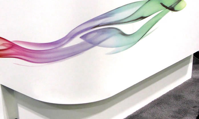 By using special software to design graphics, reliefs and images, solid surface can become 3D surfaces, both flat and curved.